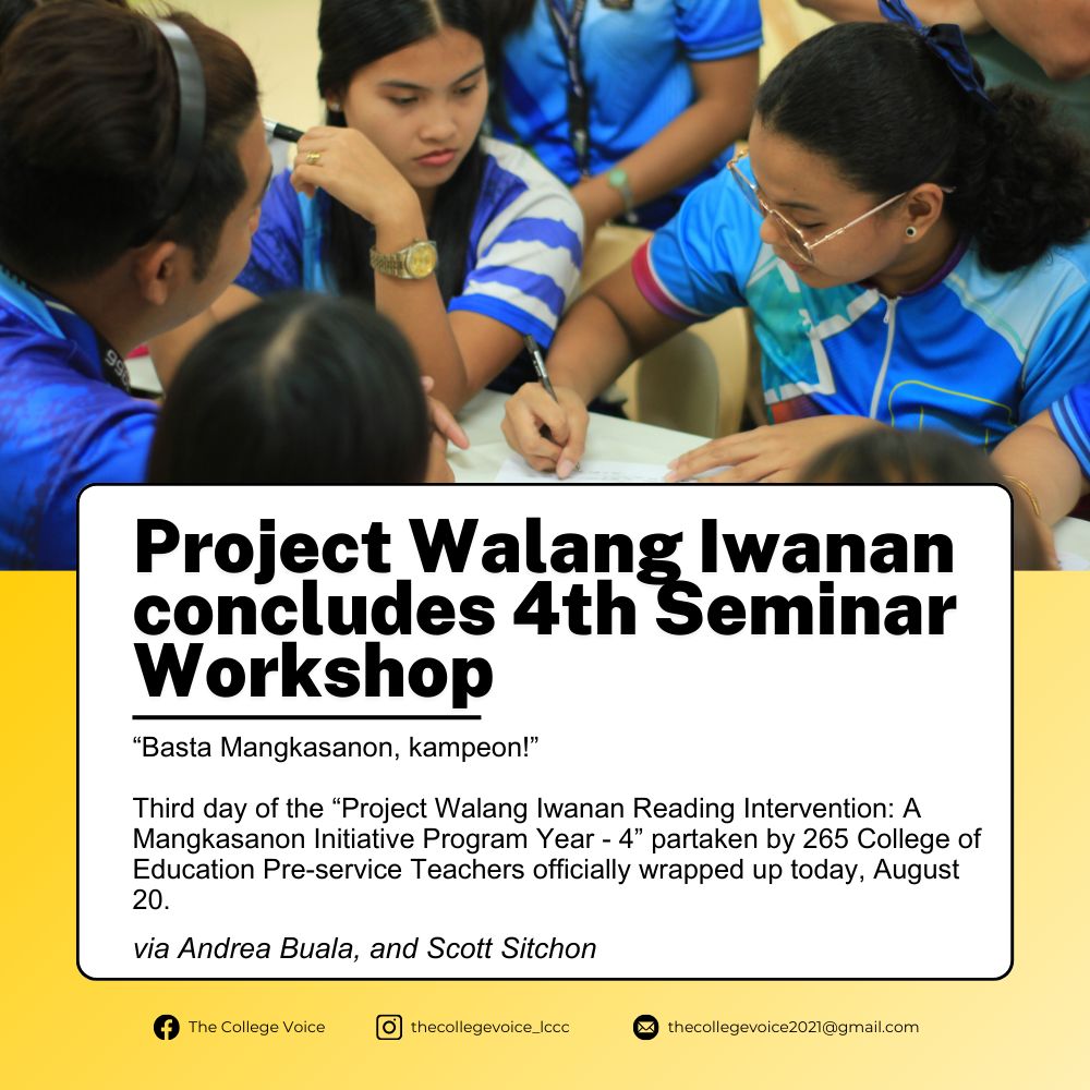 “Basta Mangkasanon, kampeon!” Third day of the “Project Walang Iwanan Reading Intervention: A Mangkasanon Initiative Program Year - 4” partaken by 265 College of Education Pre-service Teachers officially wrapped up today, August 20. During the opening, Hon. Mayor Jose Luis “Joelu” Jalandoni graced the event, giving words of encouragement to the incoming student interns. Hon. Josefina “Fini” Jalandoni, City Administrator and proponent of Project Walang Iwanan; Hon. Stephen C. Simbit, City Councilor - Chairman Committee on Education; Hon. Jaime Manuel Mariño, City Councilor - Committee on Education & Culture; Ms. Leilani Castillo, Chief Education Supervisor for School Governance and Operations Division; College President Dr. Larnie Sam A. Tabuena; and Dr. Trudy Cerbo, College of Education Dean, had given their share of inspirational messages. Four clusters had simultaneously conducted seminars for the past three days, led by the respective individuals: Dr. Sonia B. Oplas, EPS-Filipino, for Cluster 1; Dr. Sheila A. Hilado, EPS-Kindergarten, for Cluster 2; Dr. Citrobelle A. Aldeguer, EPS-English, for Cluster 3; and Mrs. Ana Liza B. Villanueva, EPS Mathematics, for Cluster 4. Project Walang Iwanan Reading Intervention, aligned with ARAL (Academic Recovery and Acceleration through Literacy) Program, is an initiative of the local government of La Carlota in bridging the gap in literacy among elementary students in partnership with the DepEd Schools Division of La Carlota and La Carlota City College.