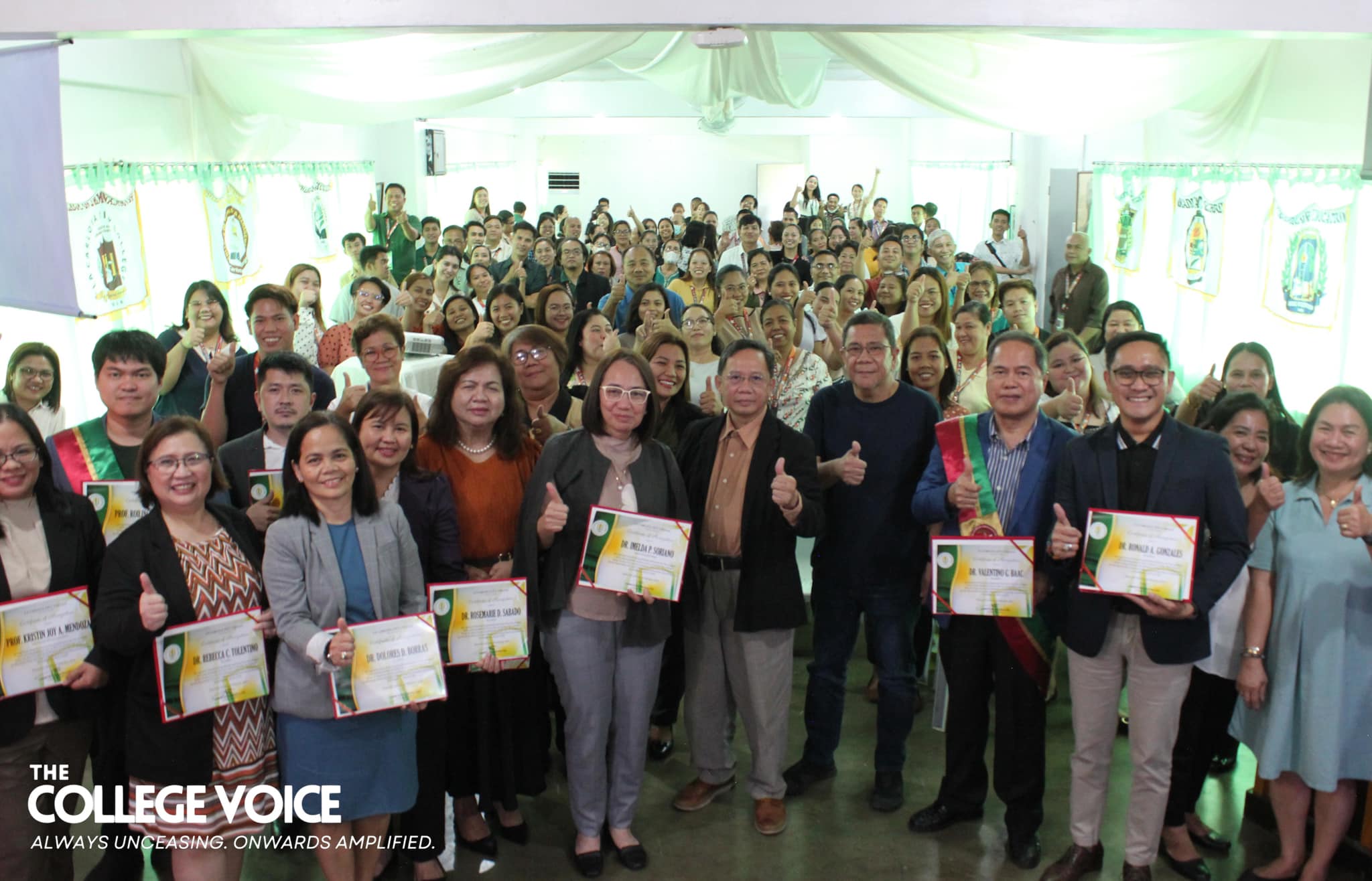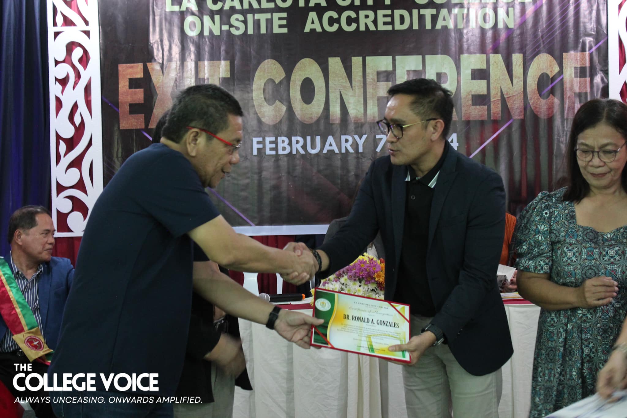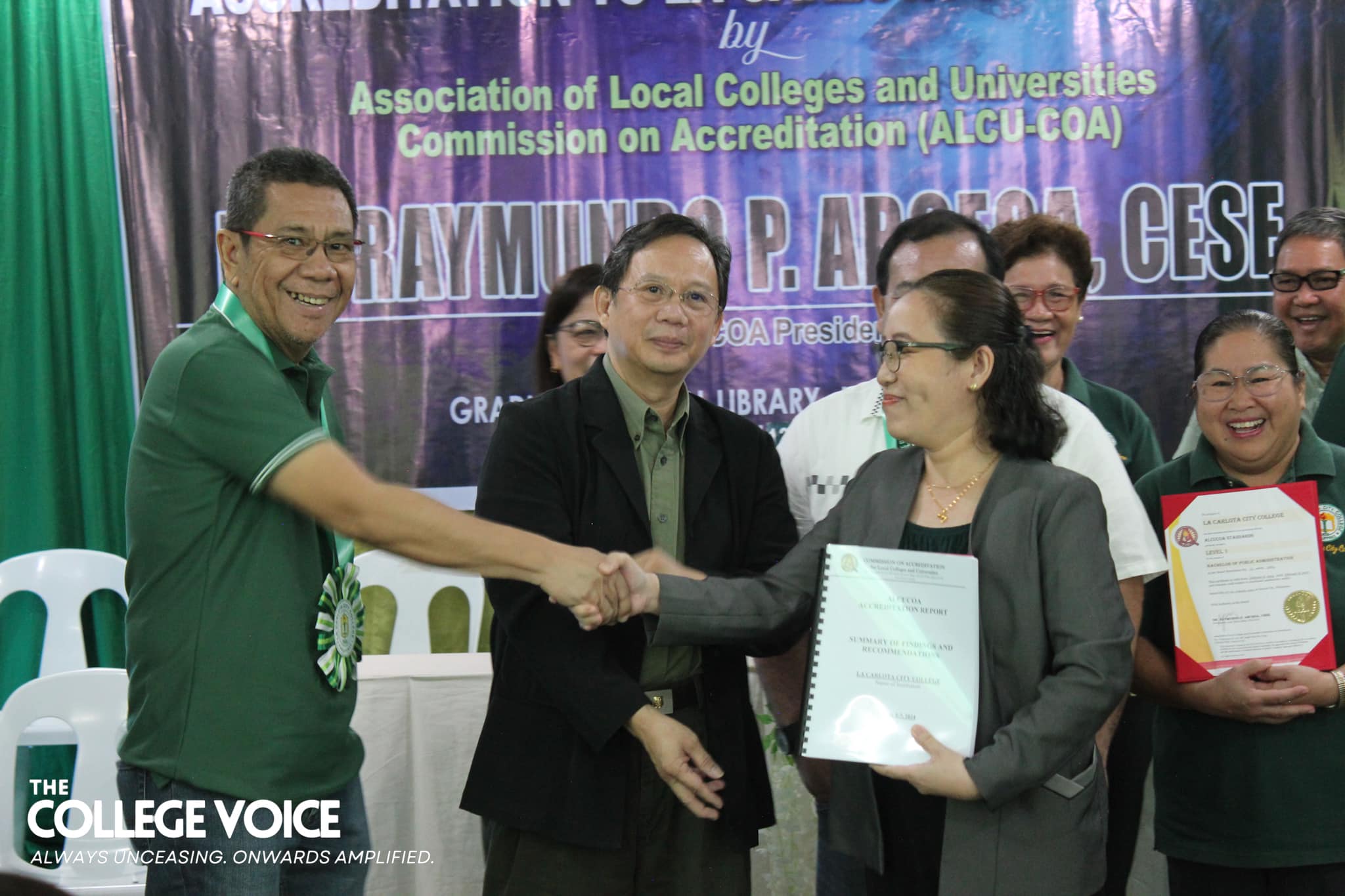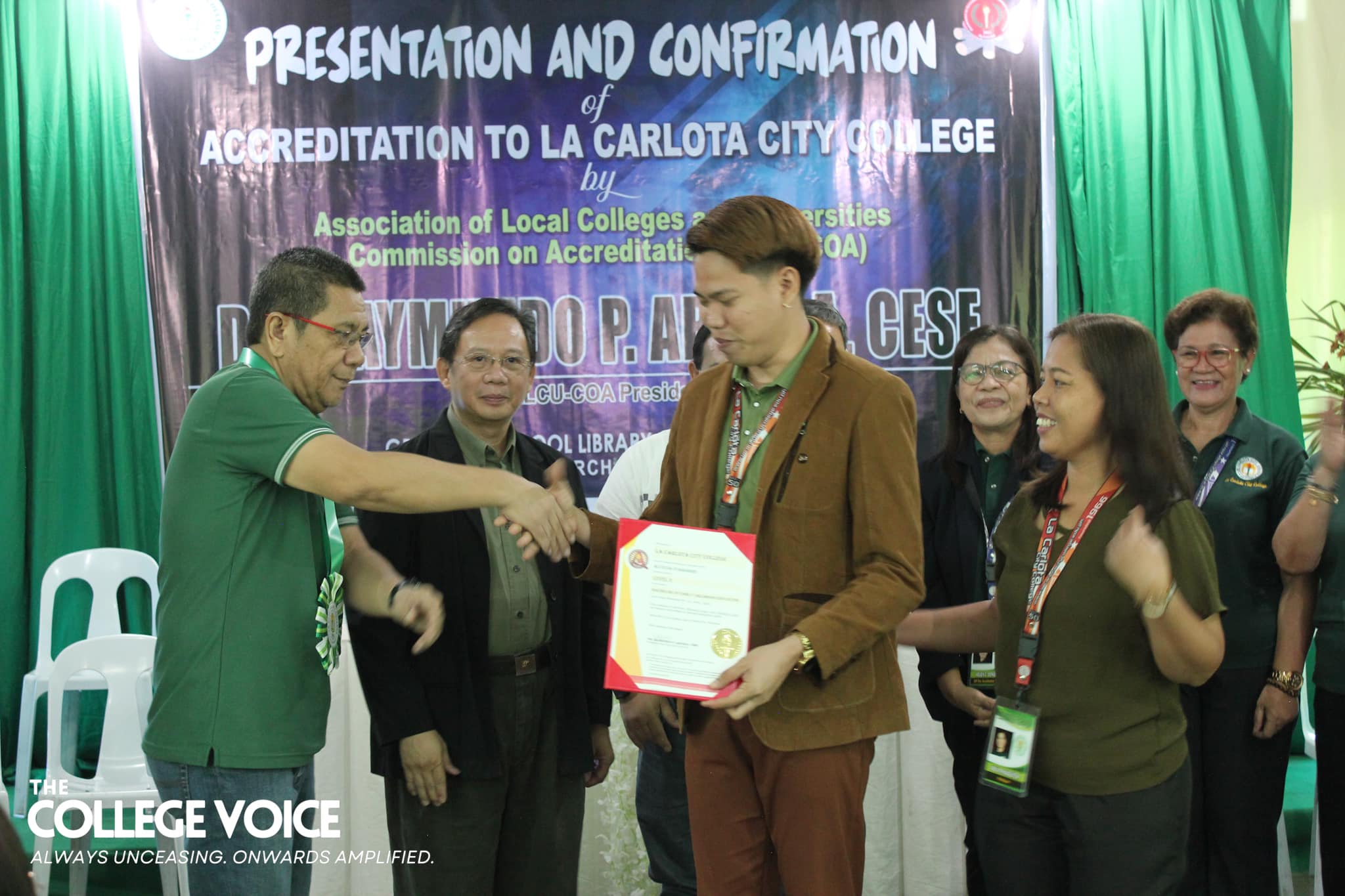 The end of the three-day on-site accreditation of La Carlota City College (LCCC) by the Association of Local Colleges and Universities - Commission on Accreditation (ALCU-COA) was met with an exit conference on February 7, 2024 at the school's Graduate School Library. Together with Mayor Rex R. Jalando-on and the ALCU-COA team of accreditors, the LCCC faculty and staff kickstarted the program with welcome remarks from Dr. Larnie Sam A. Tabuena, the College President. Hon. Jalando-on followed suit and gave his remarks as well. As the Chairman of the Board of Trustees, he remarked that this is the first time he has ever seen all the employees gathered in one room and took the opportunity to thank them for their hard work. After the College President and the honorable Mayor has given their oration, the sharing of overall impressions of the program and area accreditors have begun. The ALCU-COA accreditors have shared the commendable and exemplary strengths of the College as well as the areas where the institution needs improvement. They hope that their recommendations and suggestions will be well-received for the betterment of LCCC. To conclude the sharing of overall impressions, Dr. Imelda P. Soriano—the supervising accreditor—has spoken the accreditation team’s words of gratitude toward the College. She notes that in all her ten years of accrediting schools and colleges, this is the first time that a mayor has attended the exit conference. With this, she felt the sincerity and eagerness of Hon. Jalando-on to really be involved in the amelioration of La Carlota City College. Subsequent to hearing the remarks and thanks of the accreditors, Prof. Rasel G. Reyes, the Chairman of the Quality Assurance Center, together with Prof. Leah D. Velasco, Vice President of Finance, Mayor Rex Jalando-on, and Dr. Larnie Sam A. Tabuena, presented the plaque and token of appreciation. These were received by Prof. Roilingel Calilung (Library Area Accreditor), Prof. Earl Joseph M. Borgona (Program Accreditor, BSBA - Financial Management), Dr. Dolores Doronila-Borras (Program Accreditor, BSED Filipino), Dr. Rosemarie D. Sabado (Program Accreditor, BEED General Education), Dr. Ronald Gonzales (Program Accreditor, BSED ENGLISH and BA English), Dr. Valentino Baac (Program Accreditor, BS Public Administration), Dr. Rebecca C. Tolentino (Program Accreditor, BSED Math), Atty. Gloria V. Bañas (Program Accreditor, BS Management Accounting), and Dr. Imelda DP. Soriano, Supervising Accreditor and (Program Accreditor, Bachelor of Early Childhood Education). The exit conference ended on a happy note thanks to the joyful closing remarks made by the Chairperson of the External Affairs, Dr. Maylin M. Tongcua. Words | Andrea Buala Photos | David #TheCollegeVoice #AlwaysUnceasingOnwardsAmplified #LCCC_OnSiteAccreditation