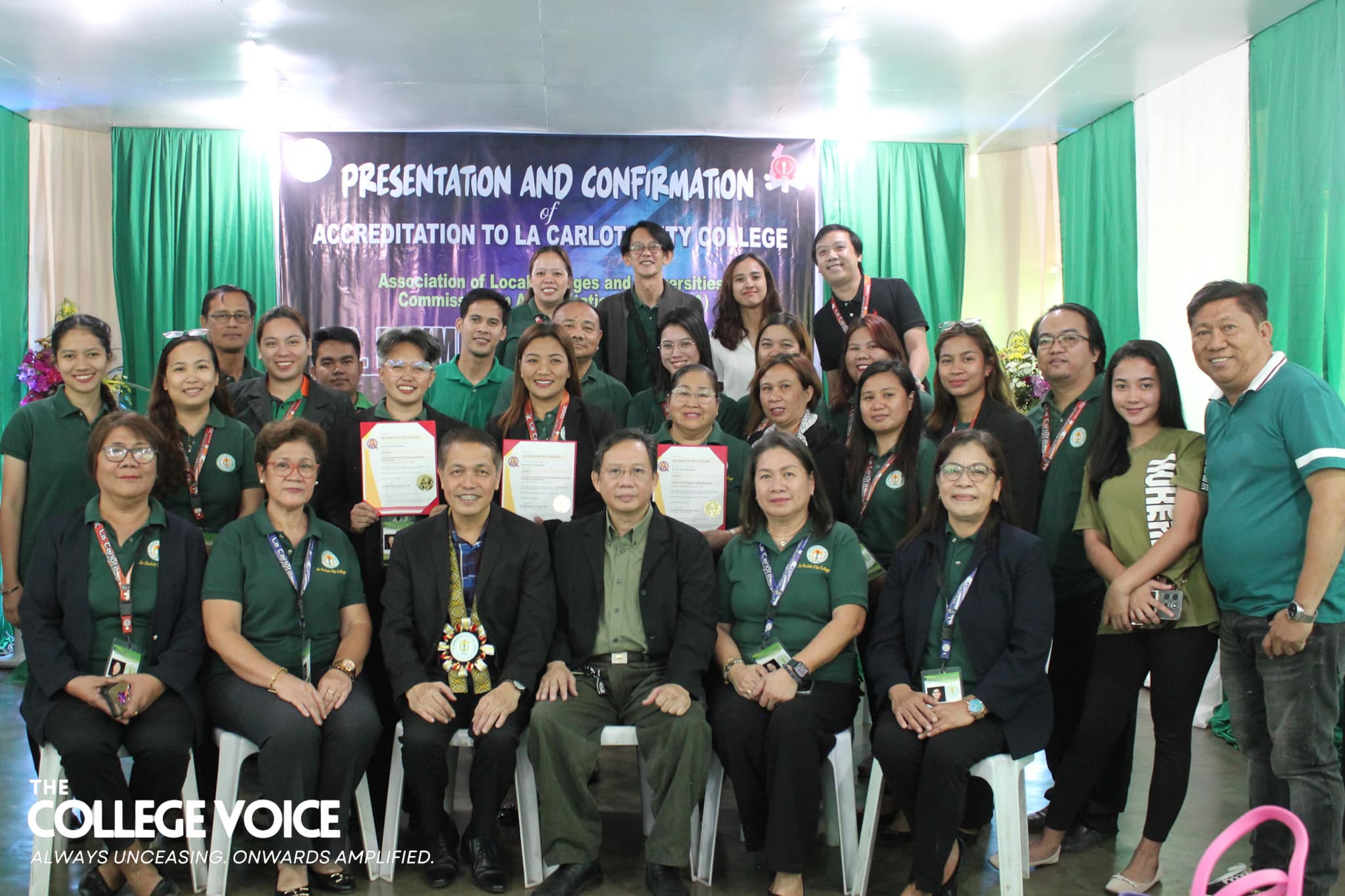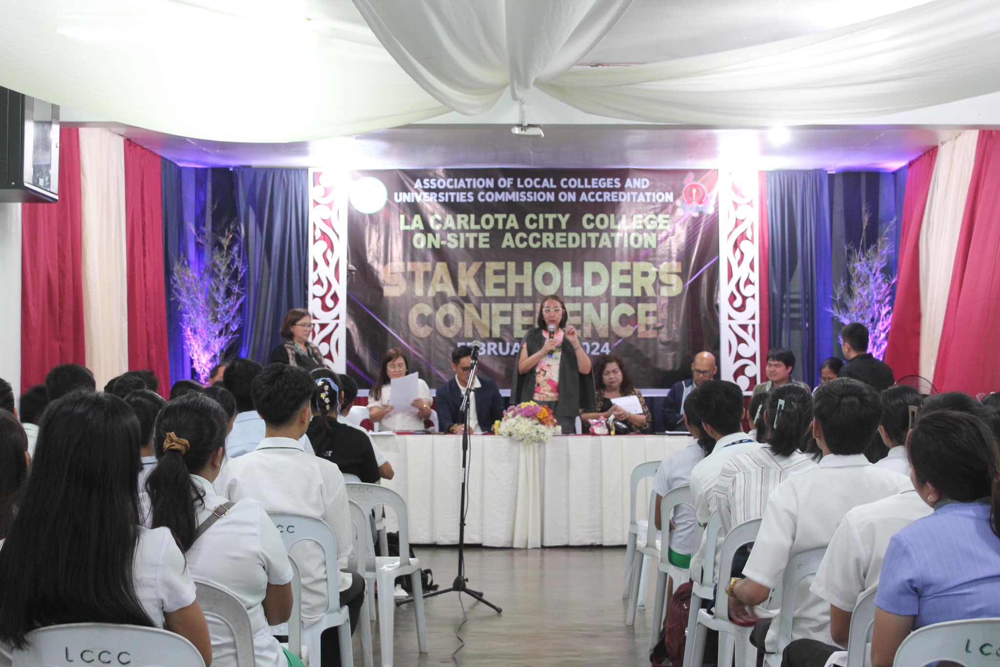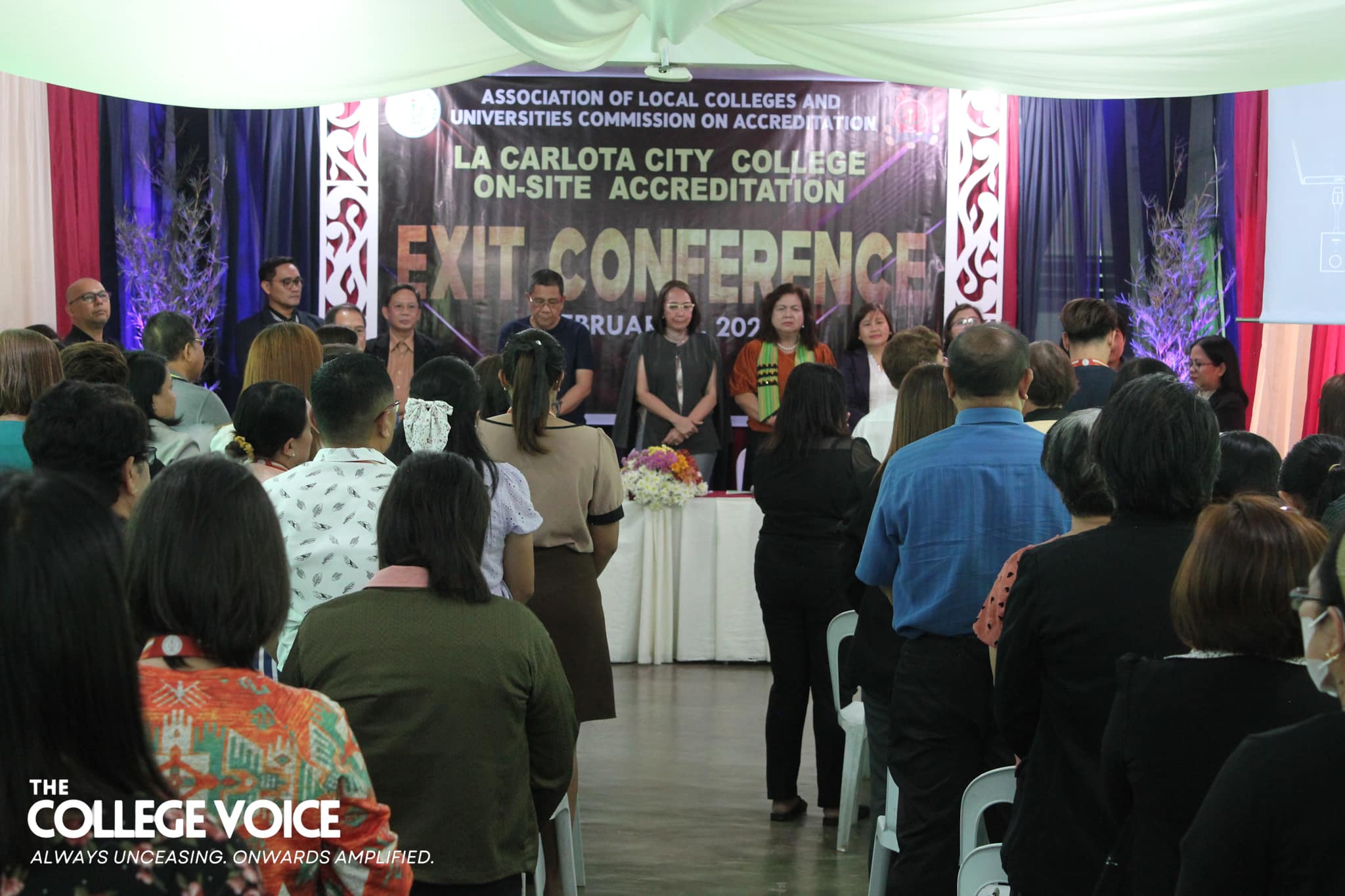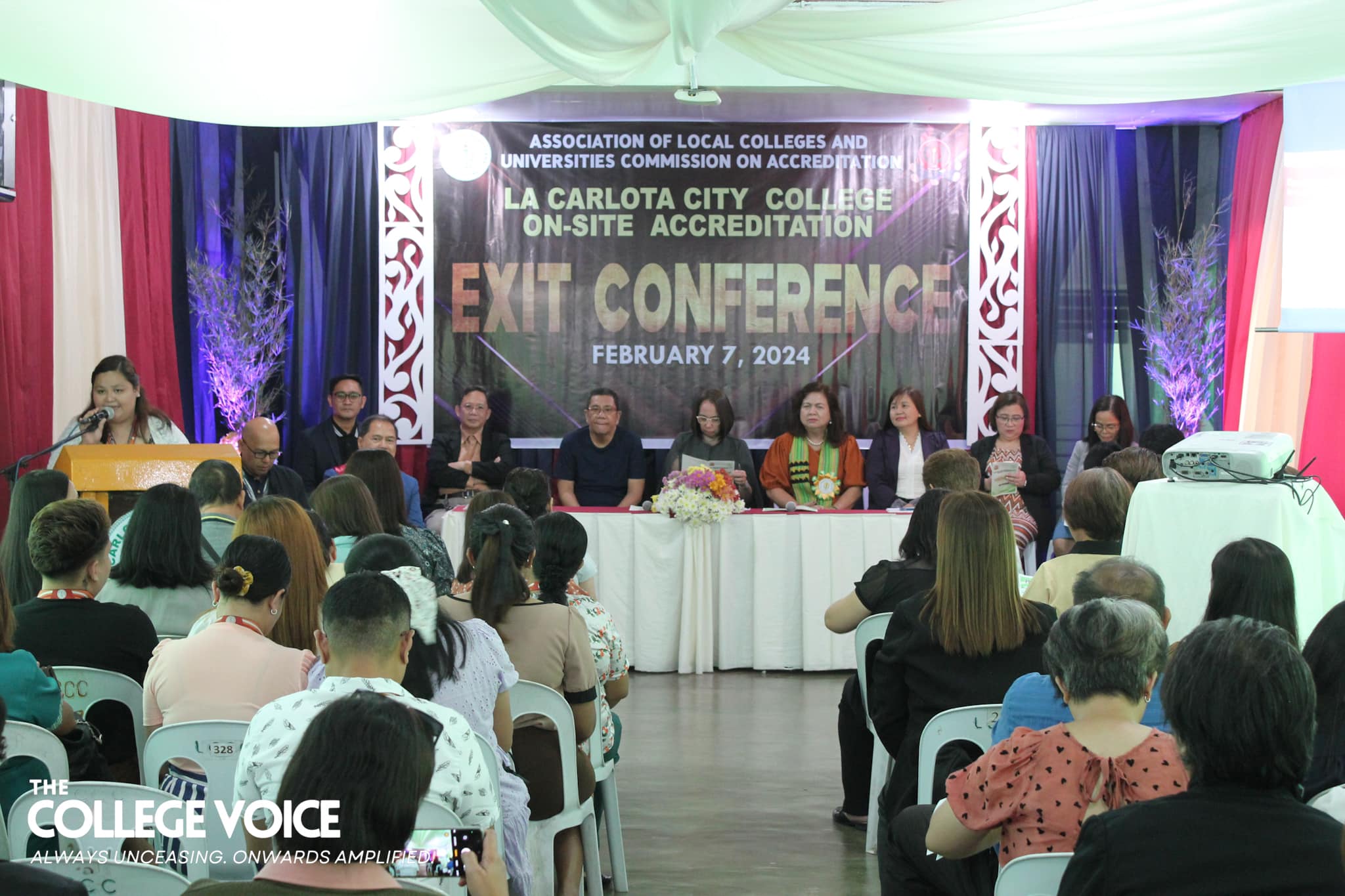 La Carlota City College extends a warm welcome to the Association of Local Colleges and Universities Commission on Accreditation (ALCU- COA) and the team of accreditors with the on-site accreditation today, February 5, 2024. Arrayed on the campus ground fronting the Rose of Sharon, JPRC and the new building, are first year students of the five colleges for the entrance of colors. Subsequent to this is the opening program held at La Carlota City Gymnasium 1. The program commenced with the entrance of the academic and administrative council, city government officials, board of trustees, Hon. Mayor Rex Jalando-on, College President, Dr. Larnie Sam Tabuena, and the ALCU- COA officials and accreditors. "Despite the fact that we have different perspectives on quality excellence and standards, we have different views and arguments about what quality is. One thing that we have in mind is that we envision La Carlota City College as a premiere educational institution of academic excellence, high moral integrity and creative interdisciplinary integration," said Dr. Larnie Sam Tabuena in his welcome remarks. Dr. Mary Hope Q. Ayson, Vice President for Administration presented the LGU officials and guests. The chairman of the Quality Assurance Center, Prof. Rasel G. Rey es led the presentation of the LCCC accreditation team, namely: Prof. Roilingel Calilung (Area Accreditor, Library), Prof. Earl Joseph M. Borgona (Program Accreditor, BSBA - Financial Management), Dr. Dolores Doronila-Borras (Program Accreditor, BSED Filipino), Dr. Rosemarie D. Sabado (Program Accreditor, BEED General Education), Dr. Ronald Gonzales (Program Accreditor BSED ENGLISH and BA English), Dr. Valentino Baac (Program Accreditor, BS Public Administration), Dr. Rebecca C. Tolentino (Program Accreditor, BSED Math), Atty. Gloria V. Bañas (Program Accreditor, BS Management Accounting), and Dr. Imelda DP. Soriano, Supervising Accreditor and (Program Accreditor, Bachelor of Early Childhood Education). LCCC's engagement with the accreditation process reflects its on-going efforts to enhance educational standards with its goal to become a university. The three-day on-site accreditation is from February 5-7, 2024. Words | Ariane Ledesma and Mayve Jane Dalisay Photos | David #TCVUpdates #TheCollegeVoice #AlwaysUnceasingOnwardsAmplified