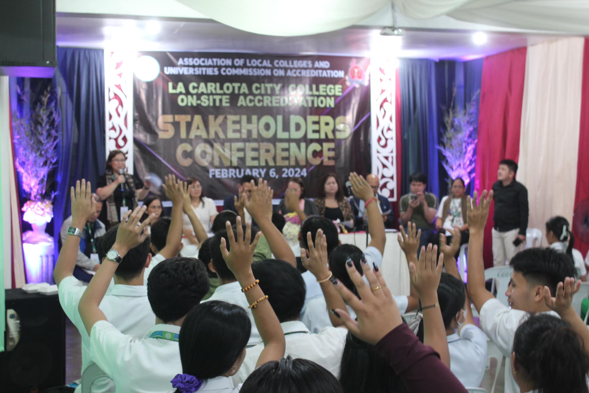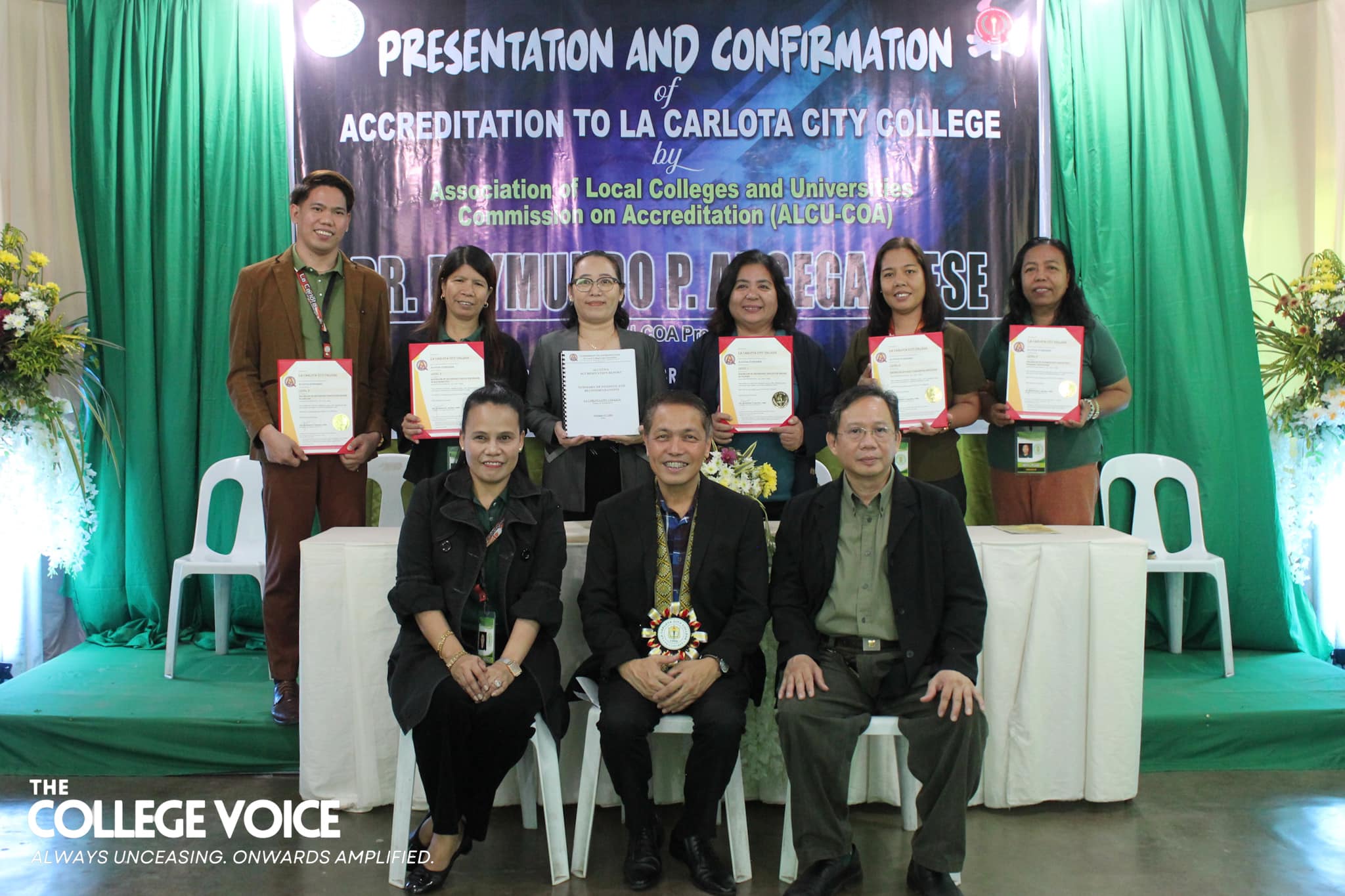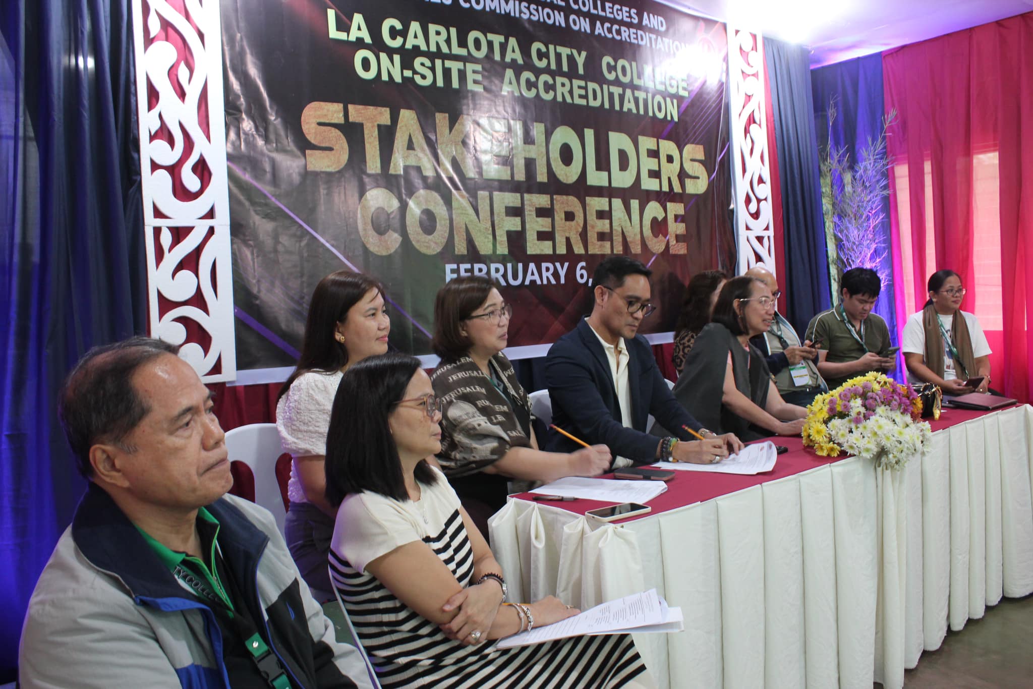 La Carlota City College extends a warm welcome to the Association of Local Colleges and Universities Commission on Accreditation (ALCU- COA) and the team of accreditors with the on-site accreditation today, February 5, 2024. Arrayed on the campus ground fronting the Rose of Sharon, JPRC and the new building, are first year students of the five colleges for the entrance of colors. Subsequent to this is the opening program held at La Carlota City Gymnasium 1. The program commenced with the entrance of the academic and administrative council, city government officials, board of trustees, Hon. Mayor Rex Jalando-on, College President, Dr. Larnie Sam Tabuena, and the ALCU- COA officials and accreditors. "Despite the fact that we have different perspectives on quality excellence and standards, we have different views and arguments about what quality is. One thing that we have in mind is that we envision La Carlota City College as a premiere educational institution of academic excellence, high moral integrity and creative interdisciplinary integration," said Dr. Larnie Sam Tabuena in his welcome remarks. Dr. Mary Hope Q. Ayson, Vice President for Administration presented the LGU officials and guests. The chairman of the Quality Assurance Center, Prof. Rasel G. Rey es led the presentation of the LCCC accreditation team, namely: Prof. Roilingel Calilung (Area Accreditor, Library), Prof. Earl Joseph M. Borgona (Program Accreditor, BSBA - Financial Management), Dr. Dolores Doronila-Borras (Program Accreditor, BSED Filipino), Dr. Rosemarie D. Sabado (Program Accreditor, BEED General Education), Dr. Ronald Gonzales (Program Accreditor BSED ENGLISH and BA English), Dr. Valentino Baac (Program Accreditor, BS Public Administration), Dr. Rebecca C. Tolentino (Program Accreditor, BSED Math), Atty. Gloria V. Bañas (Program Accreditor, BS Management Accounting), and Dr. Imelda DP. Soriano, Supervising Accreditor and (Program Accreditor, Bachelor of Early Childhood Education). LCCC's engagement with the accreditation process reflects its on-going efforts to enhance educational standards with its goal to become a university. The three-day on-site accreditation is from February 5-7, 2024. Words | Ariane Ledesma and Mayve Jane Dalisay Photos | David #TCVUpdates #TheCollegeVoice #AlwaysUnceasingOnwardsAmplified