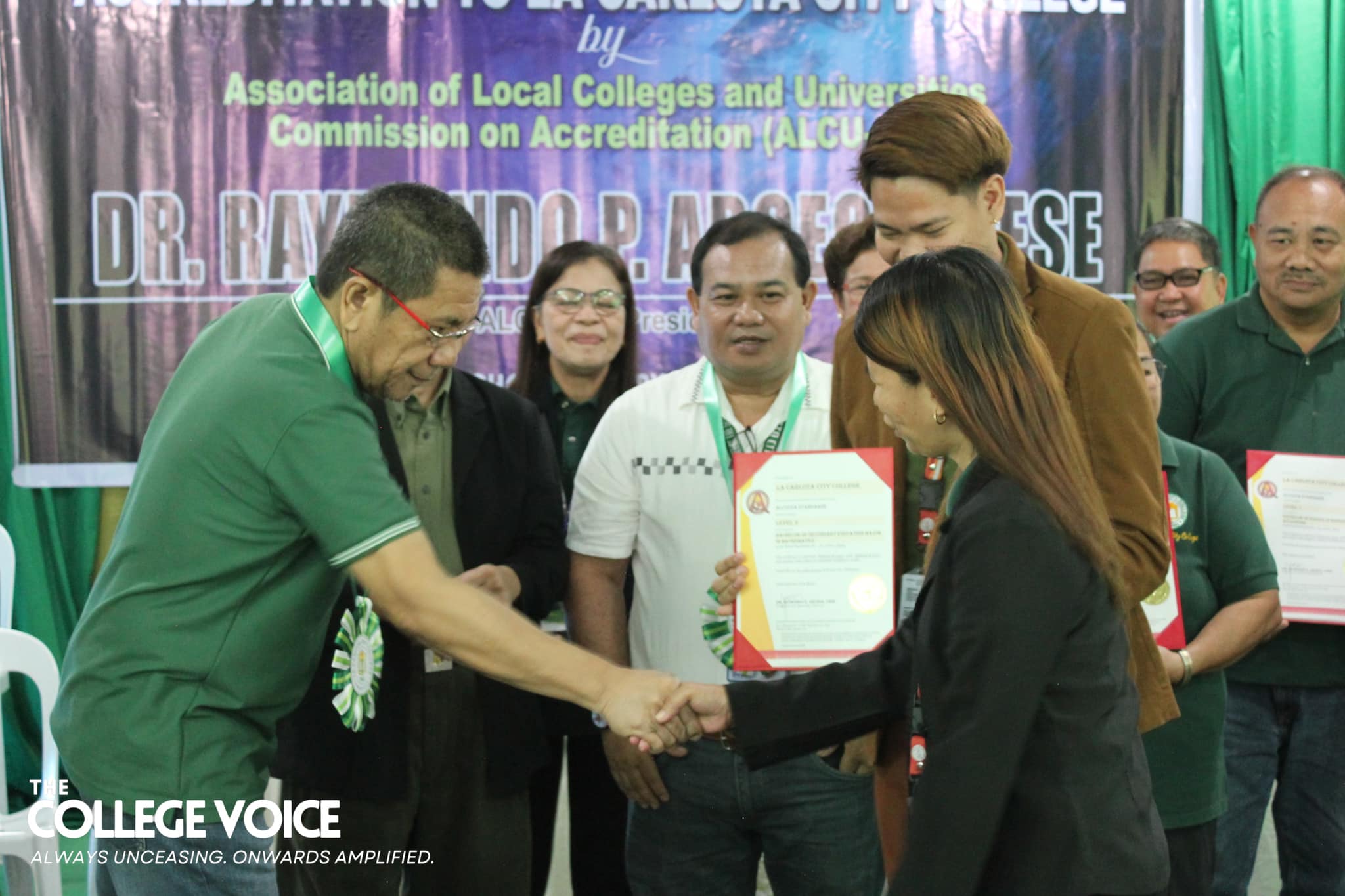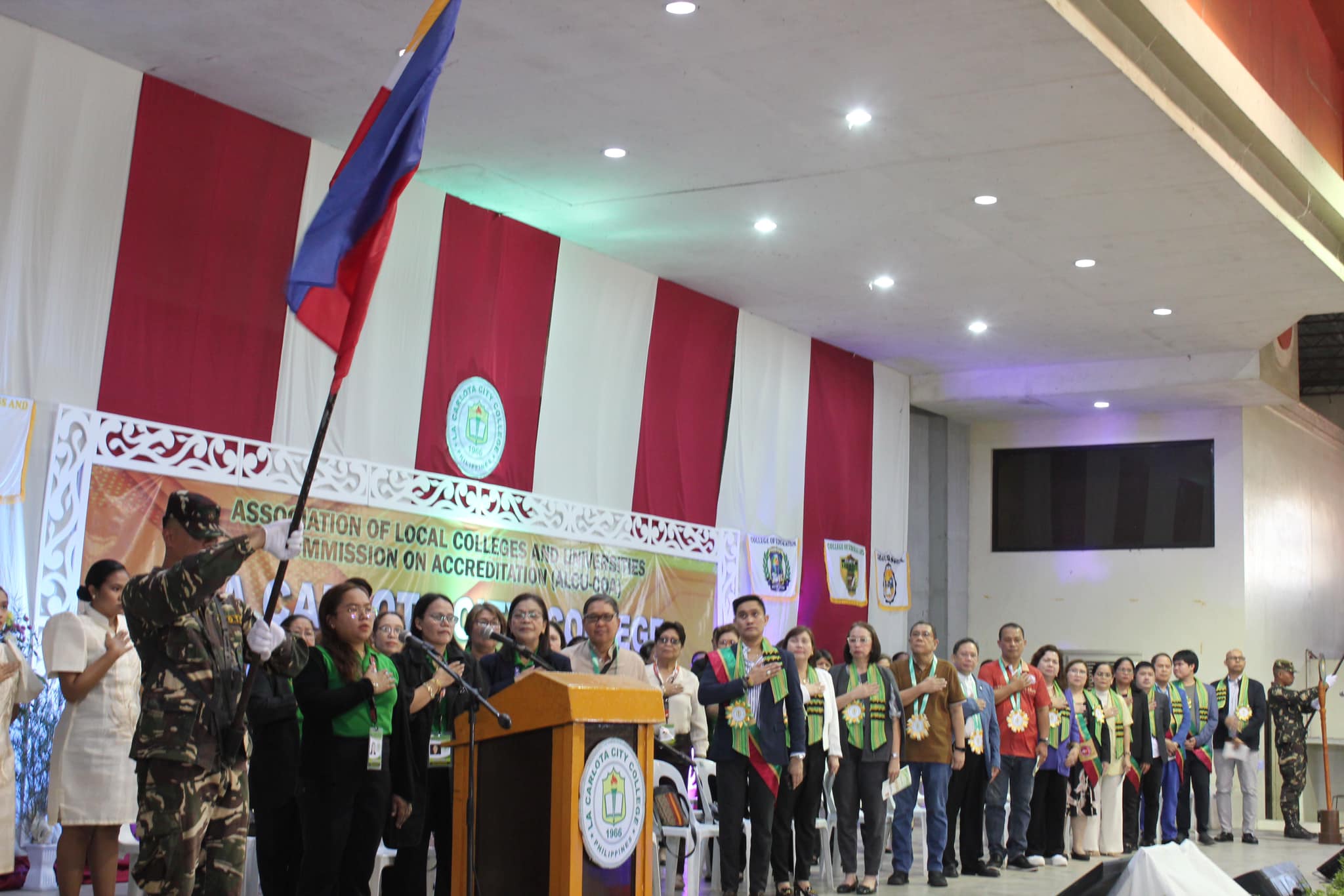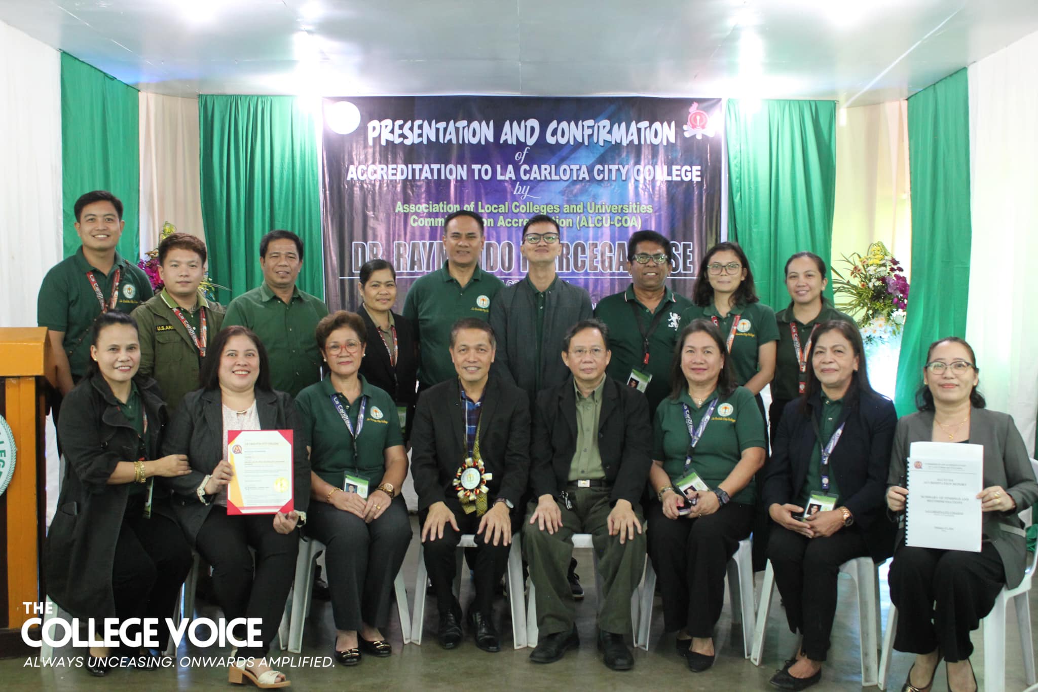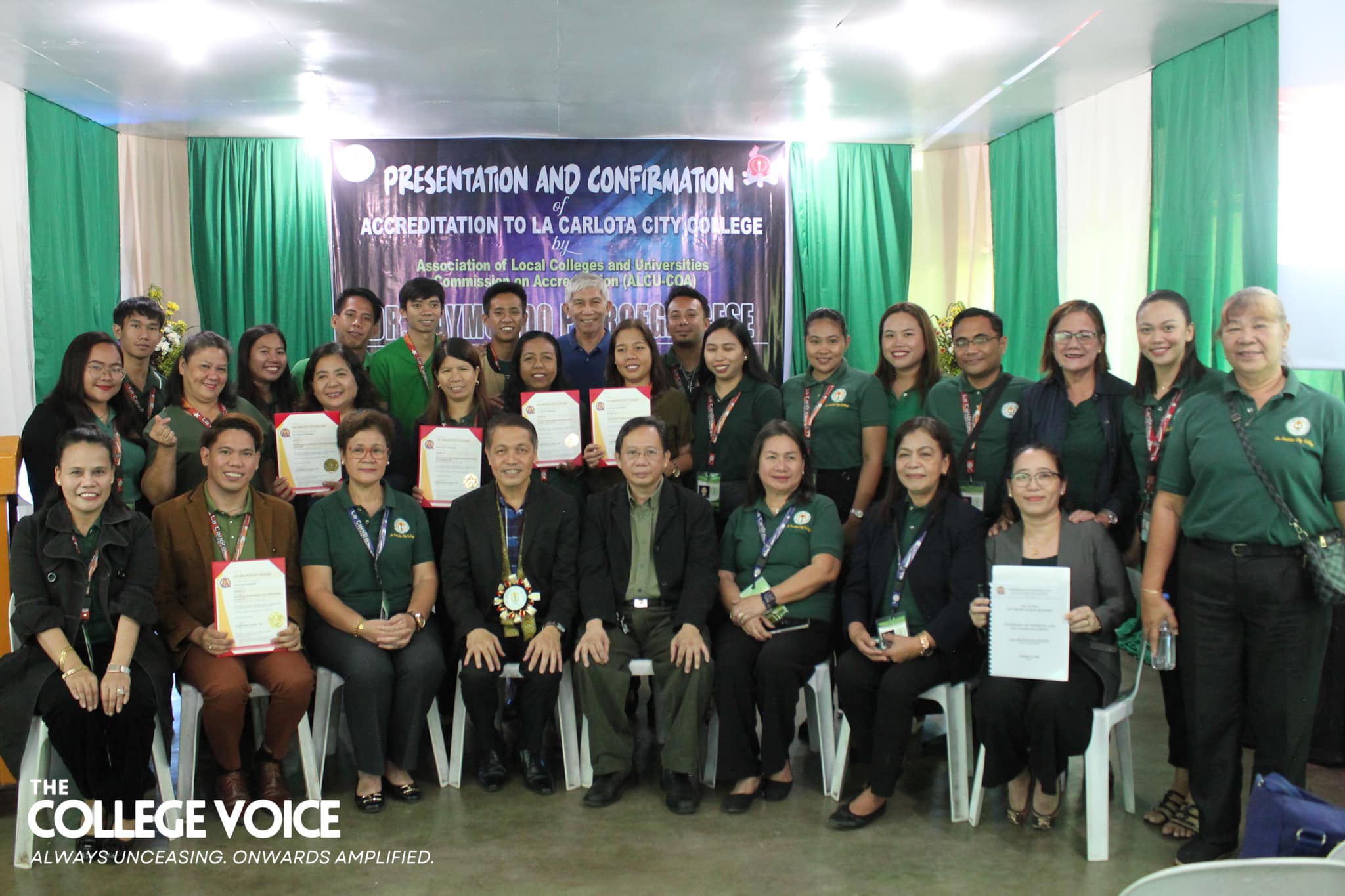 La Carlota City College extends a warm welcome to the Association of Local Colleges and Universities Commission on Accreditation (ALCU- COA) and the team of accreditors with the on-site accreditation today, February 5, 2024. Arrayed on the campus ground fronting the Rose of Sharon, JPRC and the new building, are first year students of the five colleges for the entrance of colors. Subsequent to this is the opening program held at La Carlota City Gymnasium 1. The program commenced with the entrance of the academic and administrative council, city government officials, board of trustees, Hon. Mayor Rex Jalando-on, College President, Dr. Larnie Sam Tabuena, and the ALCU- COA officials and accreditors. "Despite the fact that we have different perspectives on quality excellence and standards, we have different views and arguments about what quality is. One thing that we have in mind is that we envision La Carlota City College as a premiere educational institution of academic excellence, high moral integrity and creative interdisciplinary integration," said Dr. Larnie Sam Tabuena in his welcome remarks. Dr. Mary Hope Q. Ayson, Vice President for Administration presented the LGU officials and guests. The chairman of the Quality Assurance Center, Prof. Rasel G. Rey es led the presentation of the LCCC accreditation team, namely: Prof. Roilingel Calilung (Area Accreditor, Library), Prof. Earl Joseph M. Borgona (Program Accreditor, BSBA - Financial Management), Dr. Dolores Doronila-Borras (Program Accreditor, BSED Filipino), Dr. Rosemarie D. Sabado (Program Accreditor, BEED General Education), Dr. Ronald Gonzales (Program Accreditor BSED ENGLISH and BA English), Dr. Valentino Baac (Program Accreditor, BS Public Administration), Dr. Rebecca C. Tolentino (Program Accreditor, BSED Math), Atty. Gloria V. Bañas (Program Accreditor, BS Management Accounting), and Dr. Imelda DP. Soriano, Supervising Accreditor and (Program Accreditor, Bachelor of Early Childhood Education). LCCC's engagement with the accreditation process reflects its on-going efforts to enhance educational standards with its goal to become a university. The three-day on-site accreditation is from February 5-7, 2024. Words | Ariane Ledesma and Mayve Jane Dalisay Photos | David #TCVUpdates #TheCollegeVoice #AlwaysUnceasingOnwardsAmplified