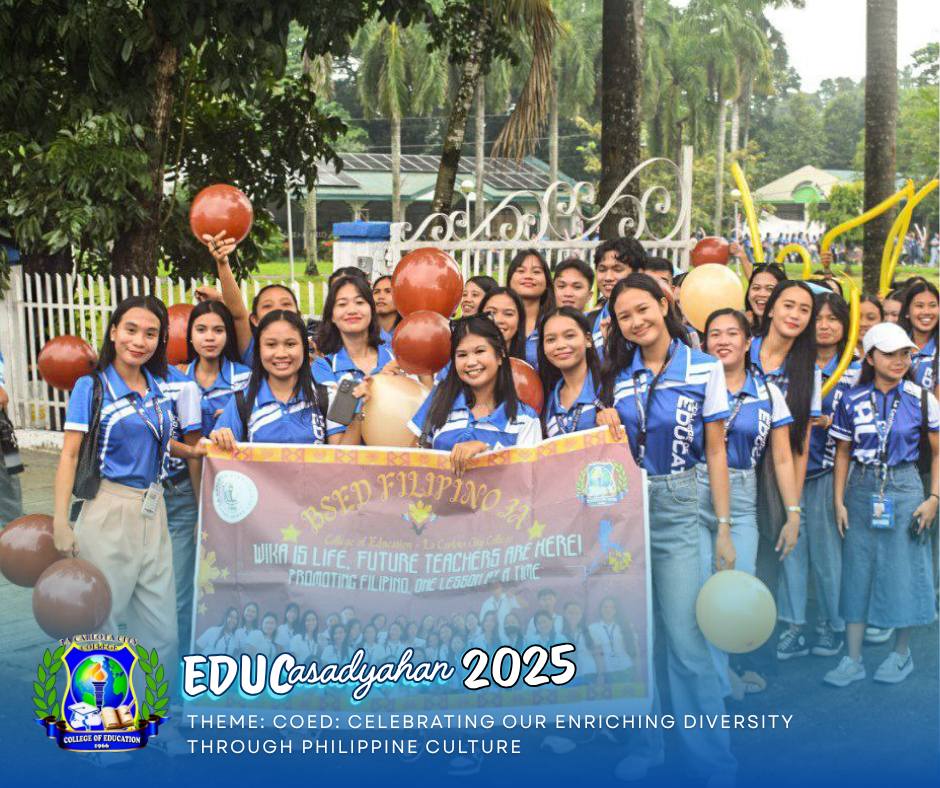 A vibrant showcase of passion, purpose, and pedagogy—where future educators shine through creativity, culture, and commitment to lifelong learning. This celebration of brilliance and creativity brings together future educators in a whirlwind of talent, teamwork, and tradition. From dazzling performances to insightful showcases, we honor the heart of education: passion, purpose, and people. BPED dominated the EDUCpaligsahan arena, sweeping most of the games including Akala ko ikaw ay Aken, SACKenya Parin, Ako ay may Lobo, and Ishoot Mo! Ishoot Mo! Ishoot Muna ang Cup!, while victory for Ikot Ikot Lang went to BSEd Filipino. In the Impromptu Speech category, BSEd Filipino emerged as champion, followed by BSEd English as first runner-up and BECEd as second runner-up. Meanwhile, the Tagisan ng Talino competition was a clean sweep by the Mathematics Program, with Julie Ann Mondia as champion, Leizle Anne Estelloso as first runner-up, and Nikka Arroyo as second runner-up. For the COEd King and Queen 2025, Jay Scotly Sitchon from BSEd Mathematics and Ericka Bautista from Bachelor of Physical Education were crowned King and Queen, respectively. The Cavalcade 2025 results highlighted Pack of Eye-glints as the champion, followed by Pack of Fangs, Pack of Hackles, and Pack of Claws as first, second, and third runners-up. Best Solo Performer awards were given to Patrick De Asis (Male Student), Kelsey Semilla (Female Student), Mr. Arnold Gidaya (Male Instructor), and Prof. Reym Nicole C. Gonzales (Female Instructor). For the Best Cultural Dress category, winners were Jenrose Tubilla (Female), Adrean Rey Tionson (Male), and Mark Cordero (LGBT). This isn’t just a celebration—it’s a cultural explosion of color, creativity, and community. Future educators take the stage, bringing the richness of our roots to life with every step, song, and story. One College. Many Cultures. Infinite Pride. The spirit of EDUCasadyahan blazes brighter than ever! Words | Lorena Molisimo Photos | Jericho Bermejo #EDUCasadyahan2025 #FutureEducatorsUnite #CollegeOfEducation #BlueAlphas #LaCarlotaCityCollege ,